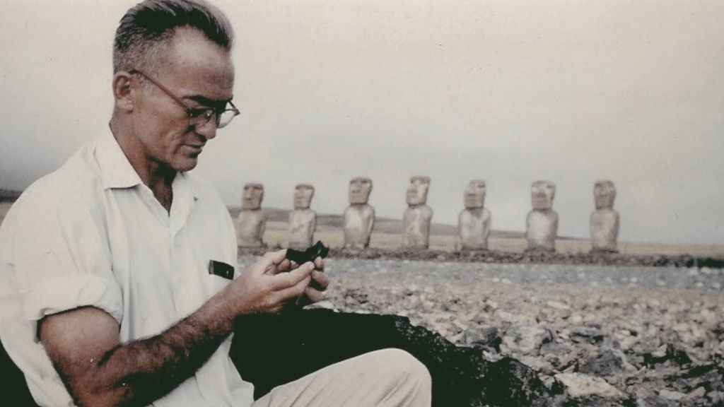 La película nos sitúa en 1955, cuando la expedición liderada por Thor Heyerdahl puso a Rapa Nui en el foco de la atención mundial. Mientras el interés internacional se concentraba en los moáis derribados y los misterios arqueológicos, la comunidad rapa nui seguía viviendo bajo el control de la Armada chilena, en un contexto de restricciones y fractura identitaria.